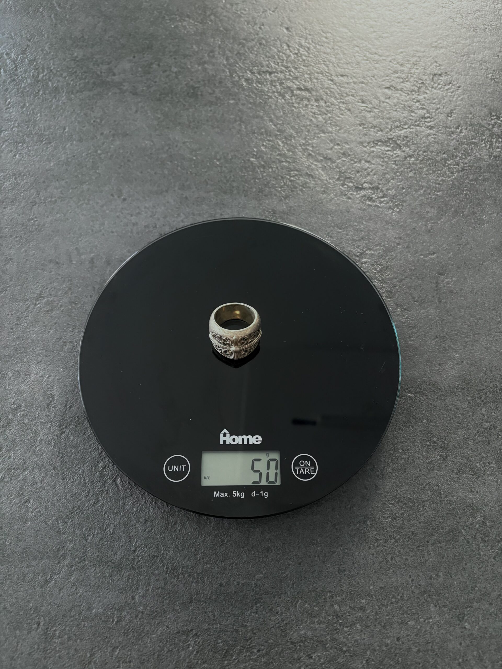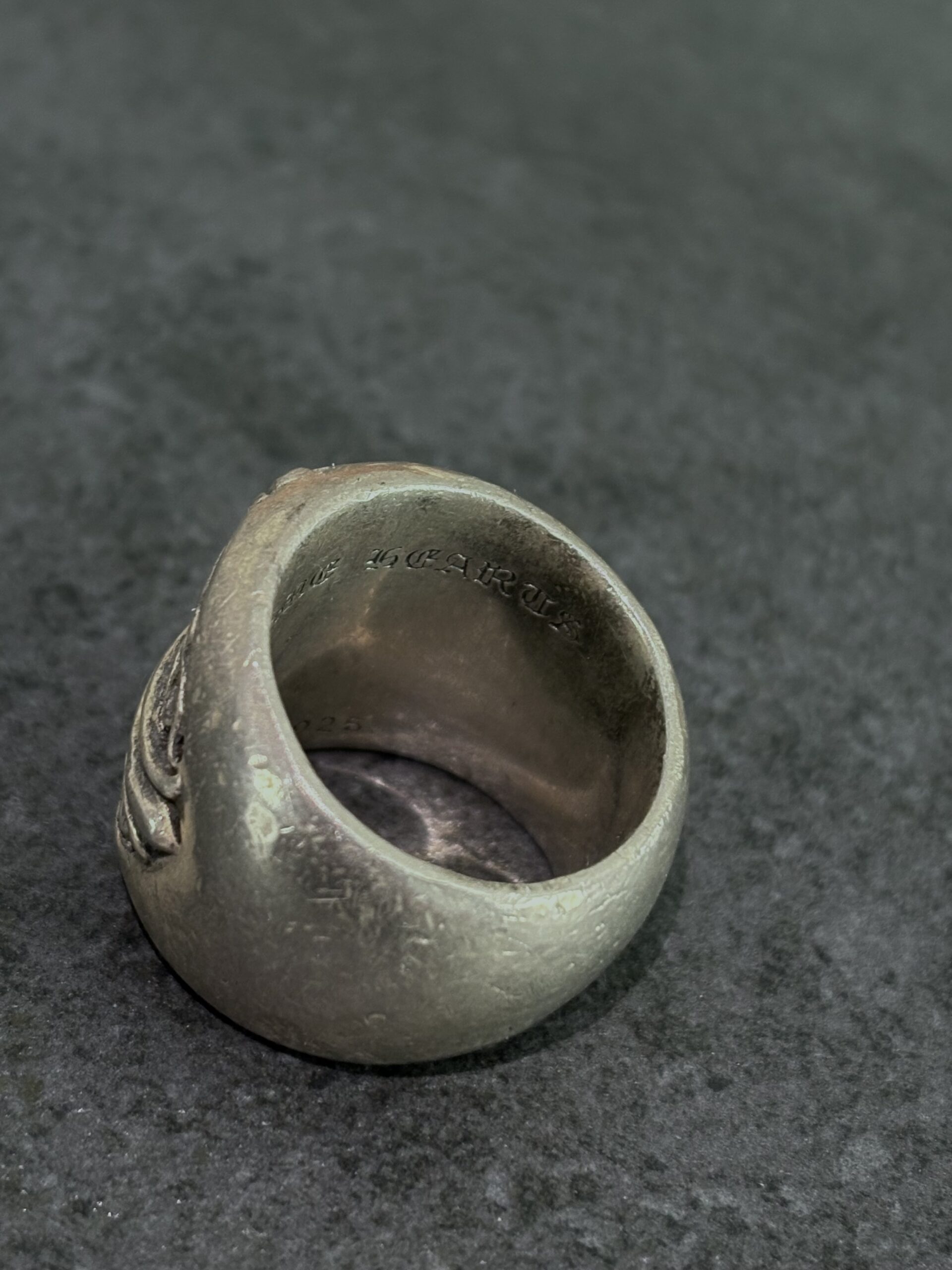 “This Chrome Hearts 2002 Large Keeper ring is an iconic piece in sterling silver, designed for style enthusiasts and collectors. It does not include a diamond but retains all the charm and authenticity of the Chrome Hearts design.
